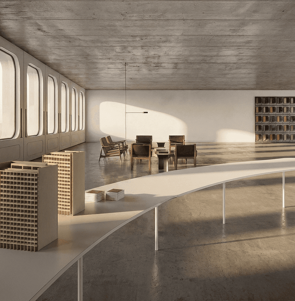 Nosso escritório está localizado no Edifício Morro Vermelho, projetado pelo arquiteto João Filgueiras Lima, o Lelé. Uma inspiração diária de um exemplar único da arquitetura modernista brasileira com traços brutalistas. O edifício é composto por módulos pré-moldados de concreto aparente, e um pensamento integral de conforto térmico associado à solução dos brieses coloridos na fachada.