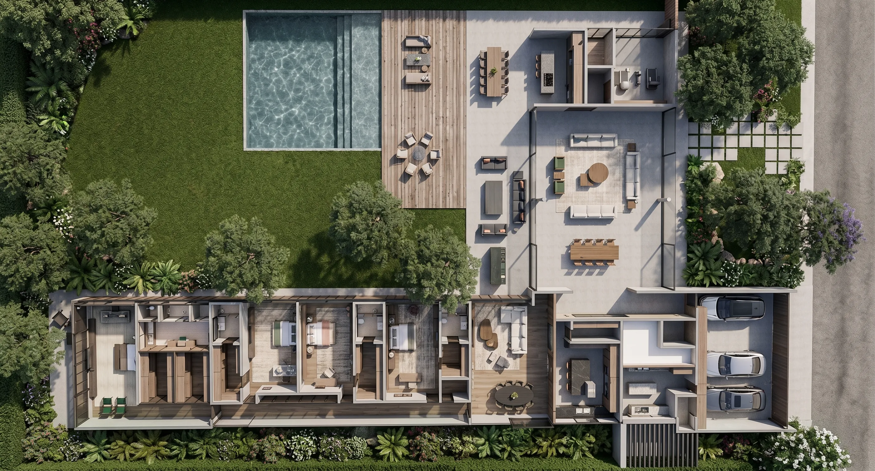 A Casa Plana é uma oportunidade de produto imobiliário modernista de alto padrão. Concreto e madeira se fundem a uma infraestrutura tecnológica completa, em um refúgio de 1.320 m² com vista livre e natureza preservada.