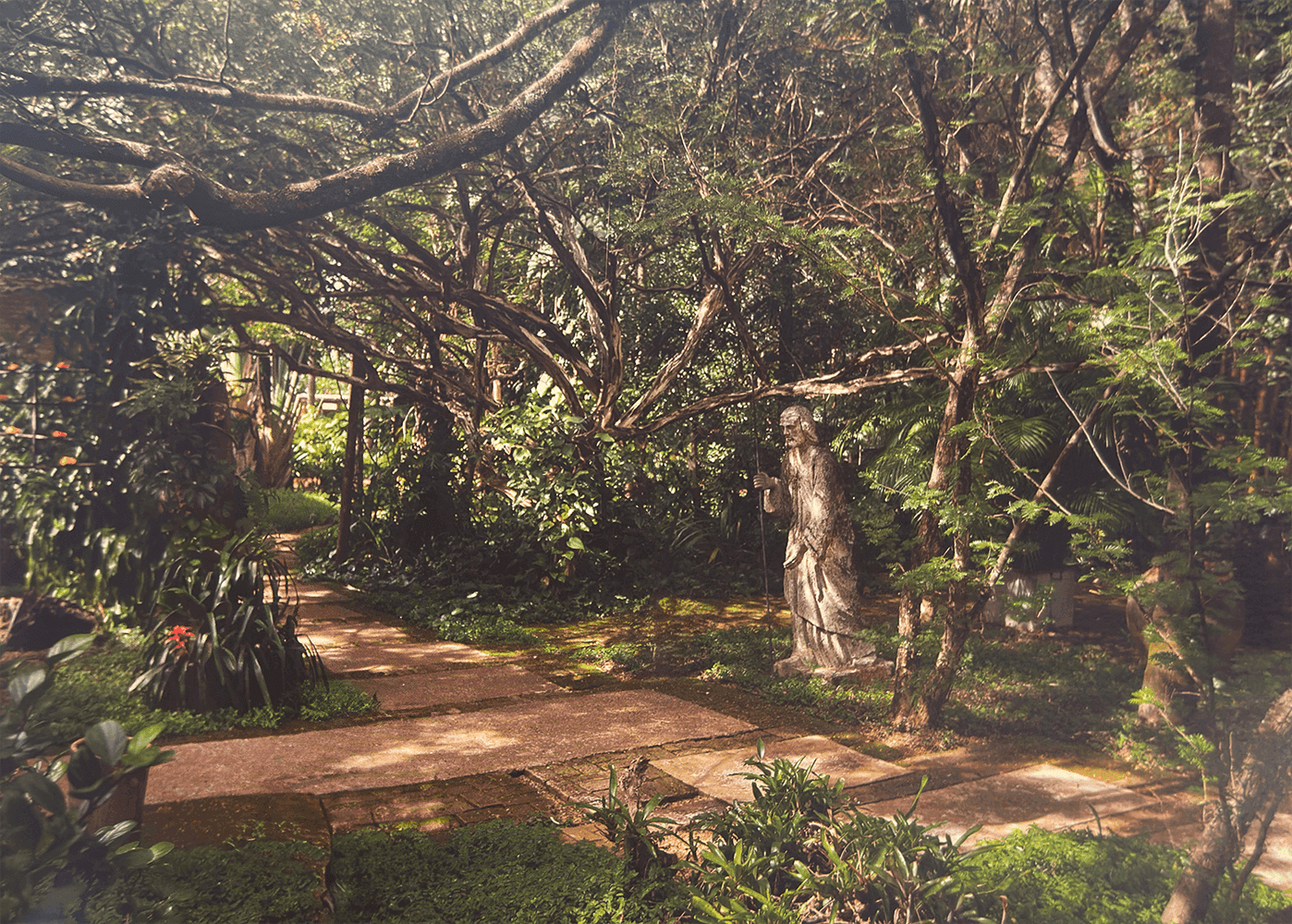 Árvores de copas altas plantadas e preservadas há décadas oferecem contato direto com a natureza dentro do centro urbano. O pensamento de Ney Ururahy era de um paisagismo tropical, com espécies icônicas da flora brasileira.